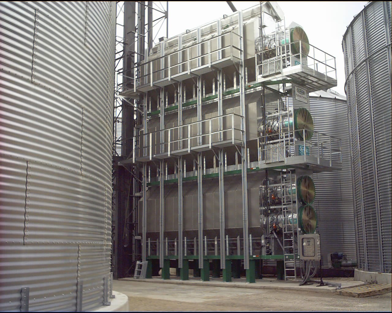 - Service catwalk is located at the top of the dryer by the wet bin, one side only