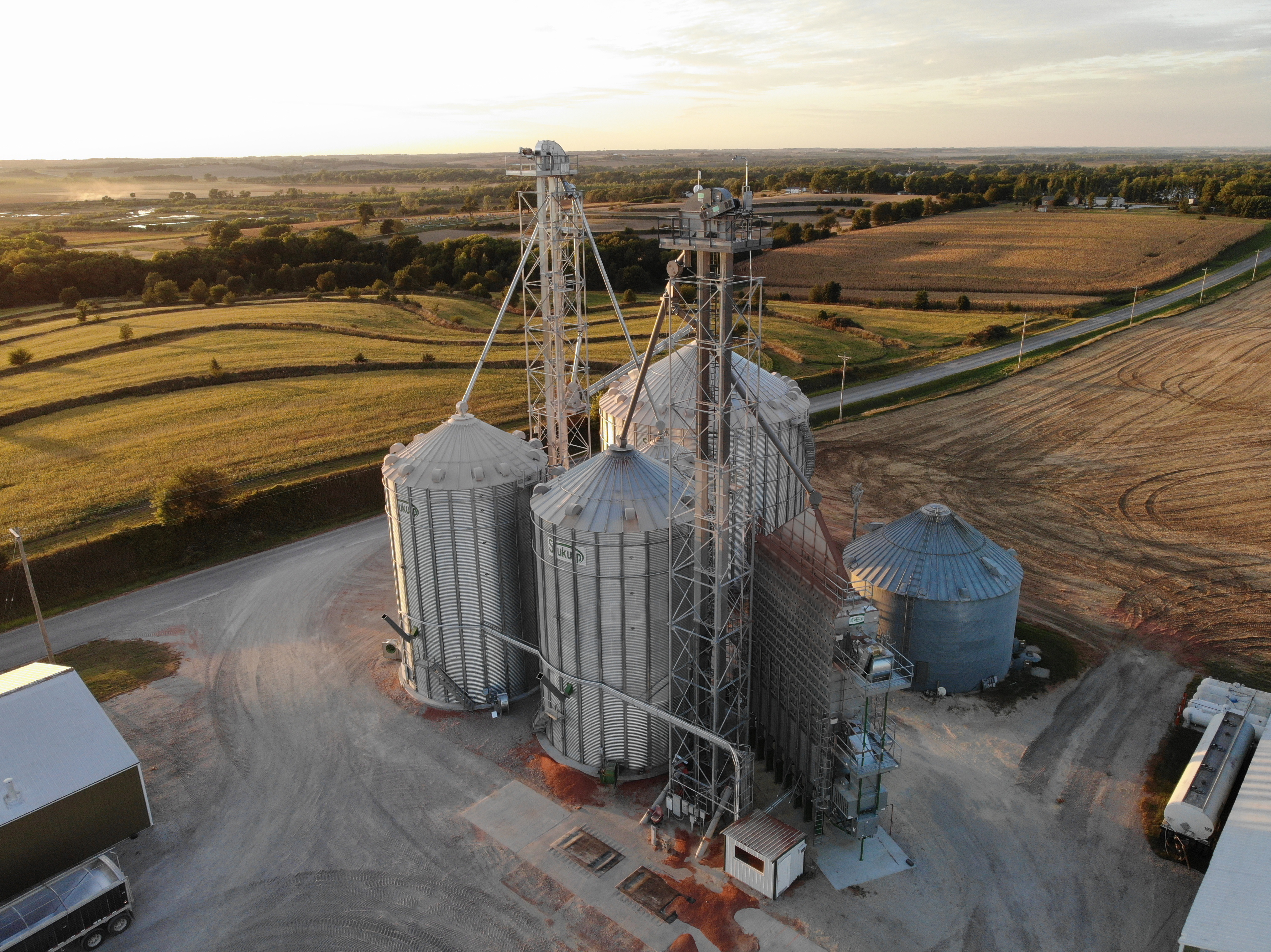 With the help of their Sukup dealer, Zimmerman Sales, Mount Farms was able to accomplish their goals of reducing the manpower needed, saving time, and increasing efficiency on their farm operation. Zimmerman Sales provided Mount Farms with two Sukup Stiffened Farm Bins, a Medium-Duty Hopper Bin, a Drag Conveyor, and a Mixed Flow Dryer. One substantial benefit that Mount Farms experienced after this project was the ability to dry and haul crops out simultaneously.