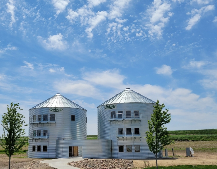 On the outskirts of Treynor, IA, Craig Buckingham created a unique wedding venue hotel. As a long-time Sukup product customer, Craig decided to use Sukup's Non-Stiffened Farm Bins for this project.