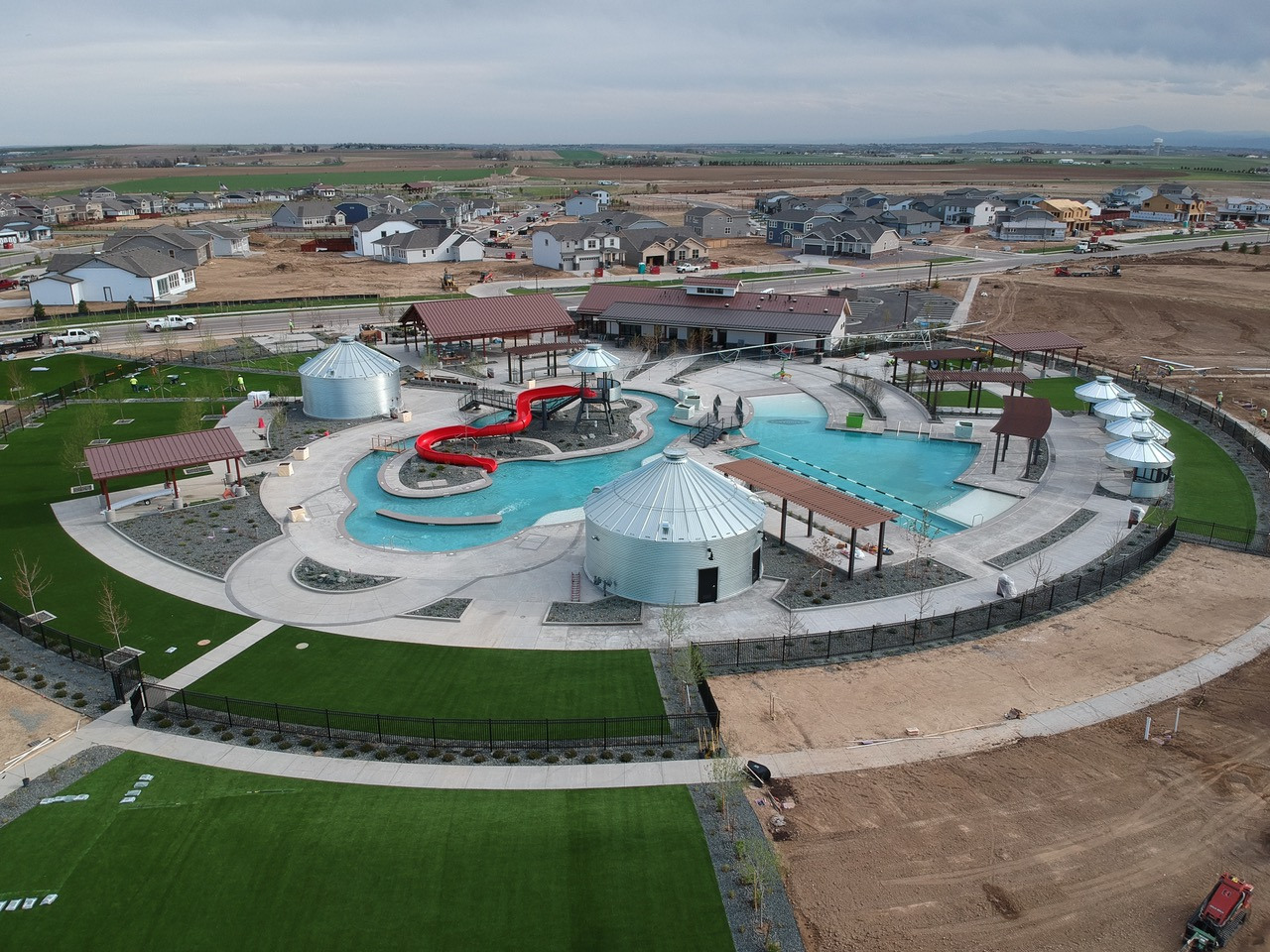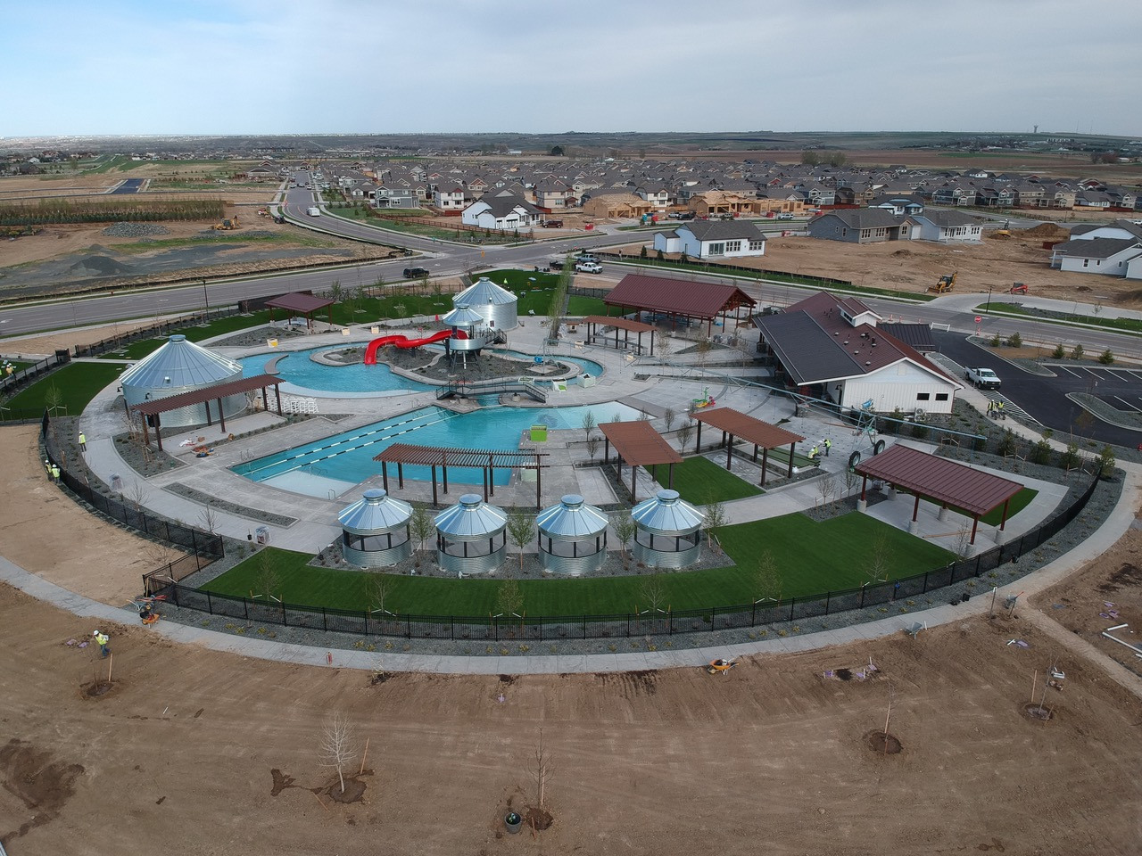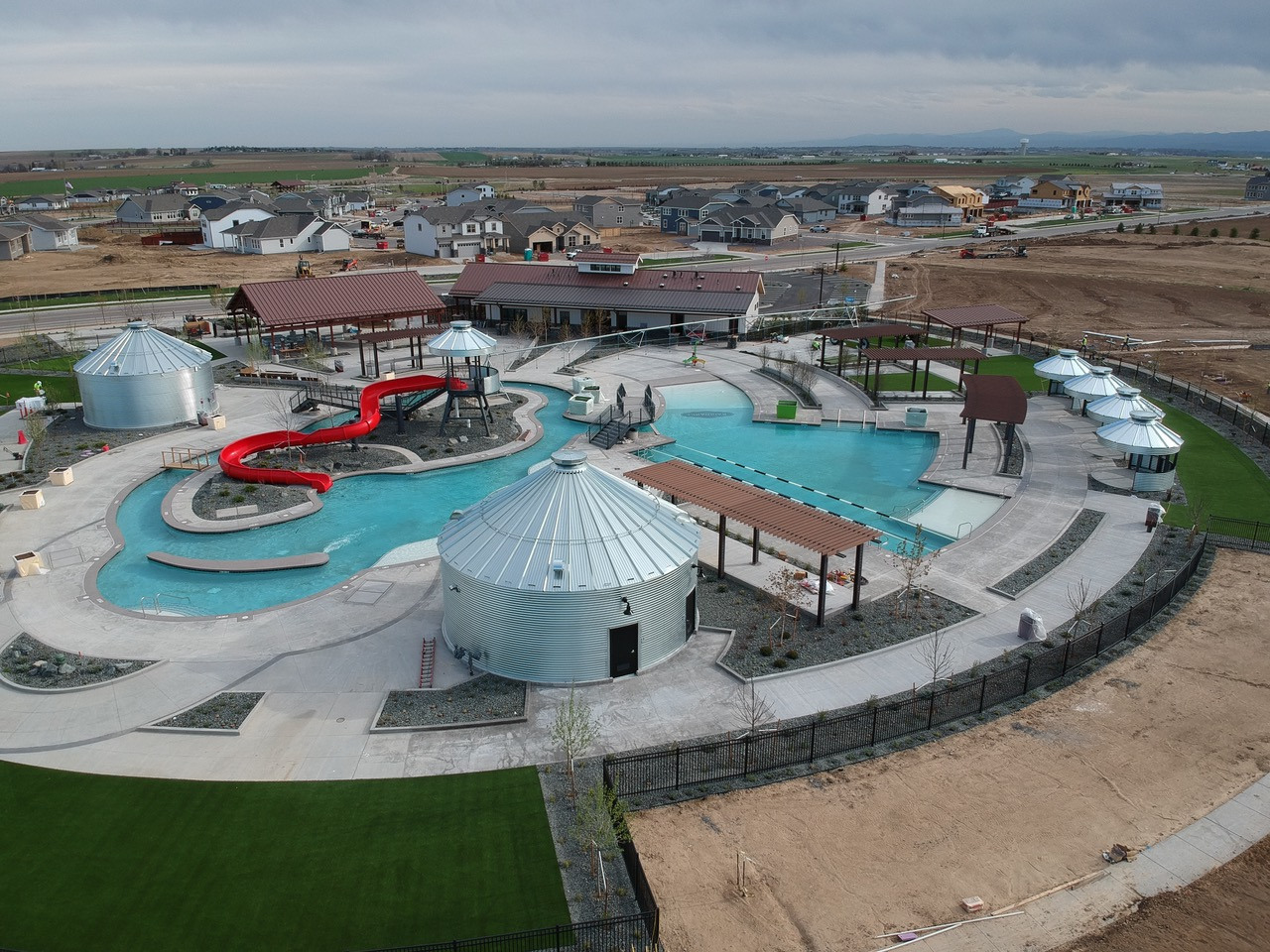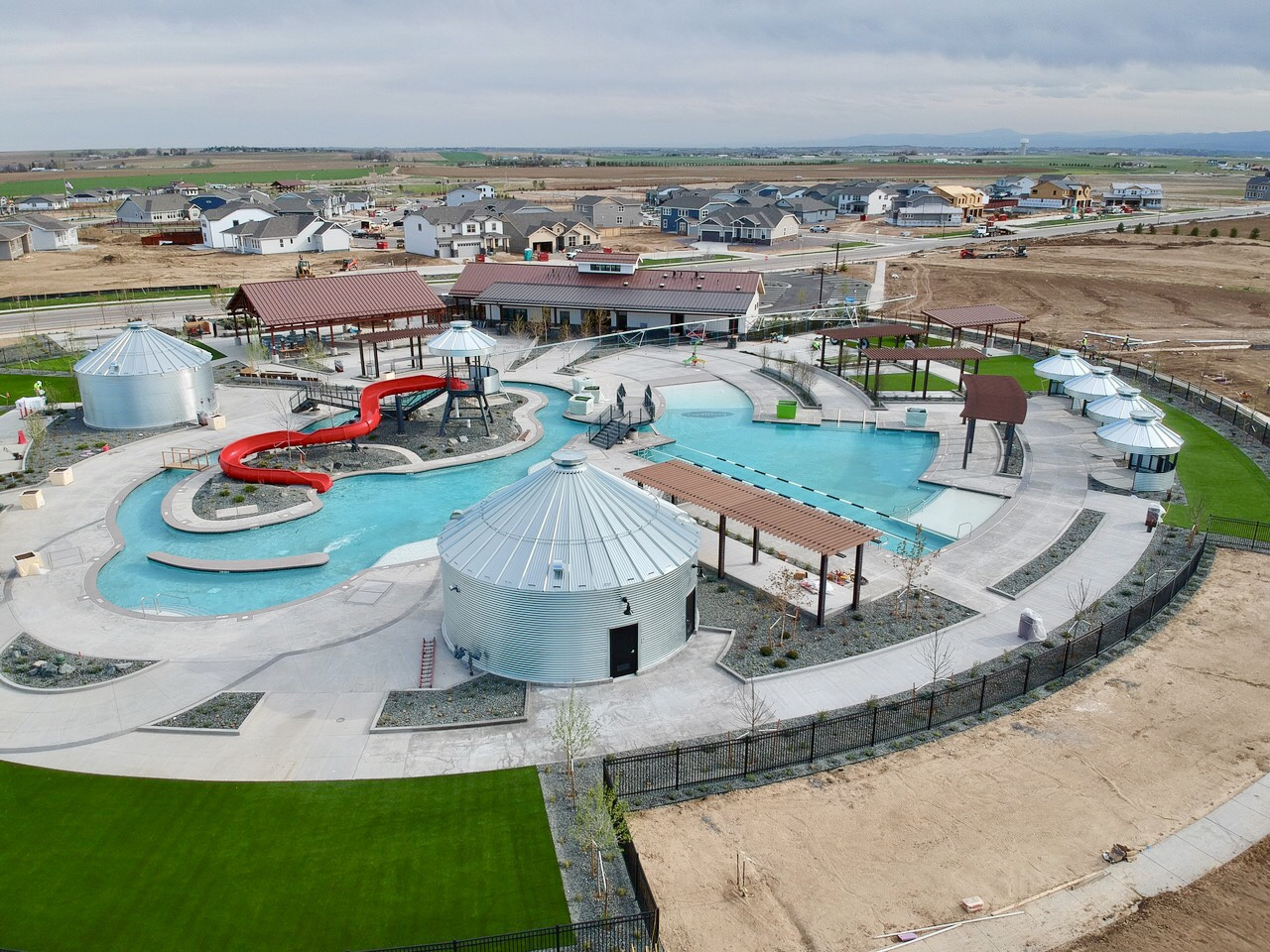 Quality Storage Solutions incorporated Sukup grain bins and bin components as structures throughout the community water park. Other agricultural design elements, including a center pivot sprinkler, old tractors, and a musical covered bridge also spoke to its farming heritage.
